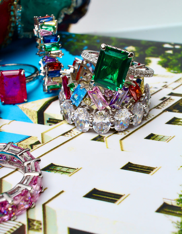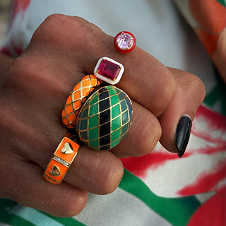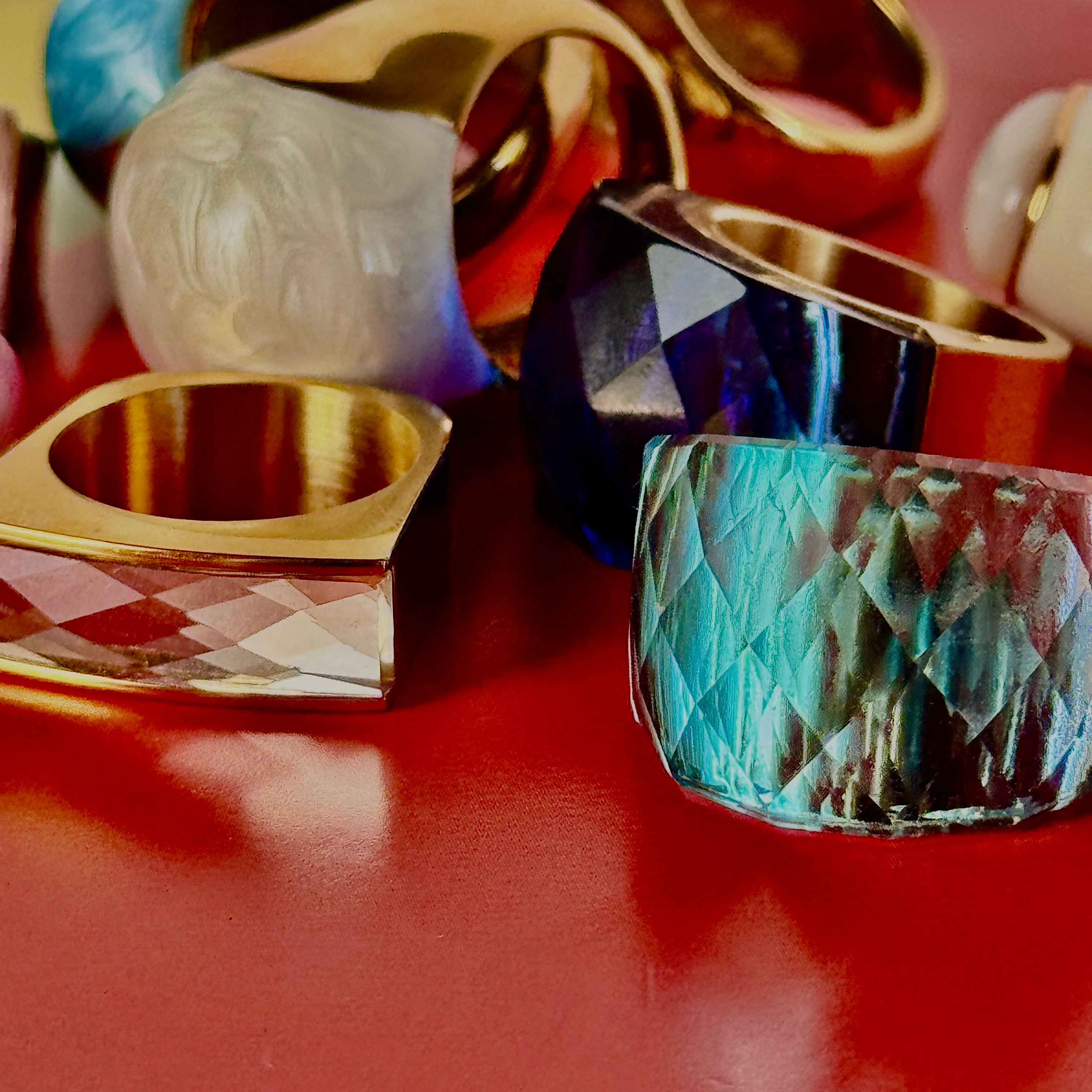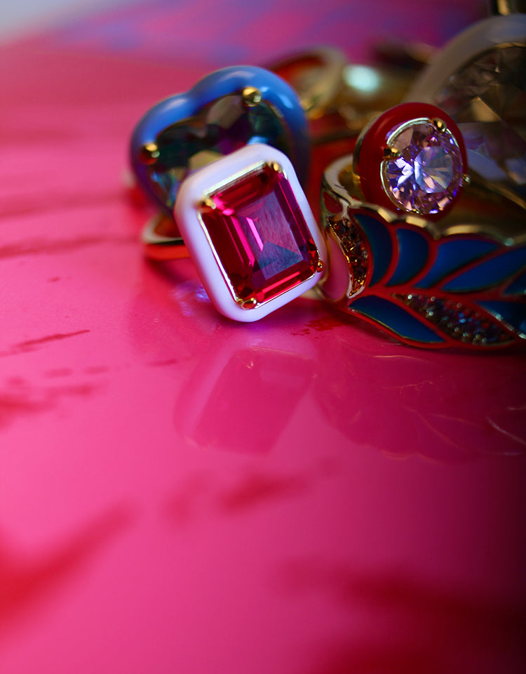 Candy Darling Sea, Opulent Solitaire, Stone Heart Enamel Adjustable Ring